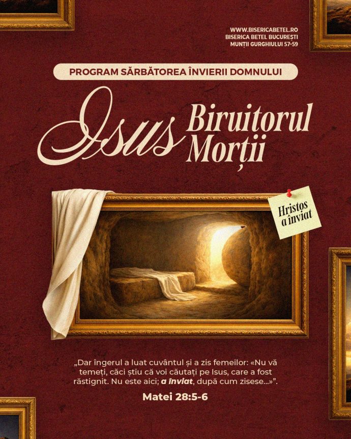 ✨ Isus – Biruitorul morții! ✨ În aceste zile speciale, ne adunăm împreună pentru a celebra cea mai mare victorie din istorie: învierea Domnului Isus Hristos. Moartea a fost învinsă, iar speranța a devenit vie pentru fiecare dintre noi. Te […]