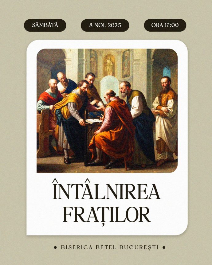 Frățietatea nu este doar o întâlnire, ci o legătură a inimilor unite prin Hristos. Te invităm la o seară de comuniune, rugăciune și încurajare reciprocă, unde vom împărtăși din Cuvânt, din experiențele trăite cu Domnul și din bucuria de a sluji împreună.