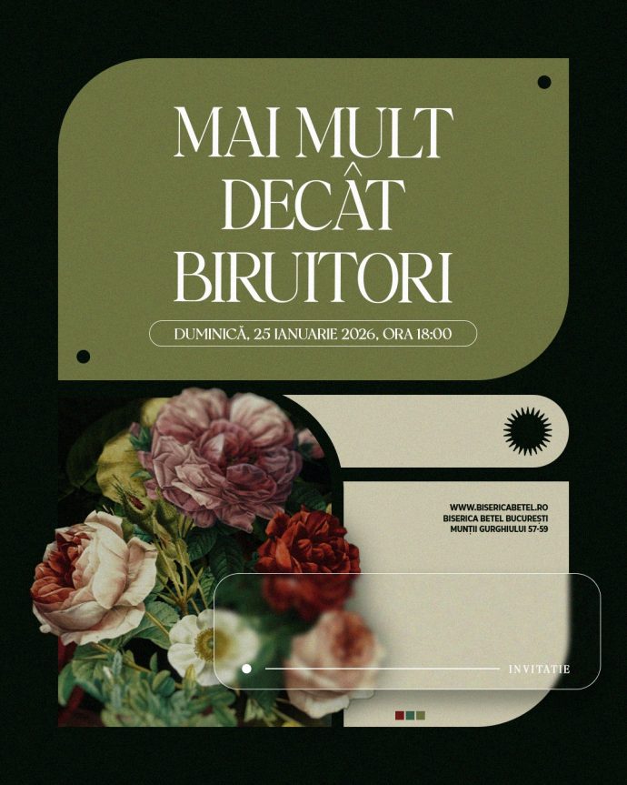 Luptele nu lipsesc, dar nici harul care ne susține. Prin Hristos, nu doar supraviețuim încercărilor, ci suntem chemați să trăim biruința care vine din dragostea Lui. Te invităm la o seară de încurajare și întărire, în care vom privi spre puterea lui Dumnezeu care ne face mai mult decât biruitori.