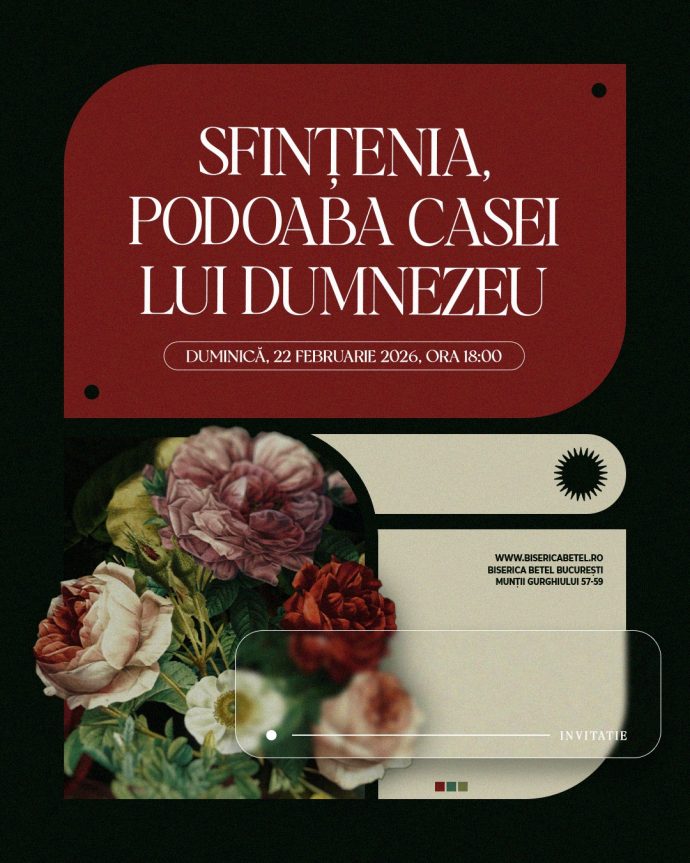 Într-o lume care relativizează valorile, Dumnezeu rămâne Sfânt și ne cheamă la o viață curată, dedicată Lui. Sfințenia nu este o povară, ci frumusețea unei inimi puse deoparte pentru Domnul. Te invităm să descoperim împreună cum sfințenia devine podoaba vieții noastre și a Casei lui Dumnezeu.