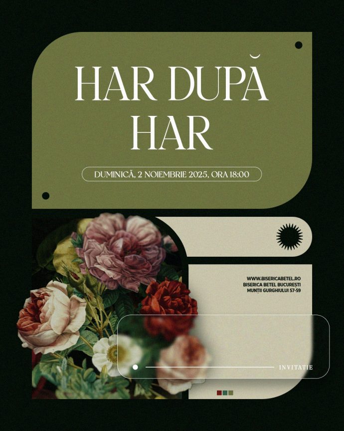 🌅 „Har după har” – Duminică, 2 Noiembrie 2025, ora 18:00 Când crezi că ai ajuns la capătul puterilor, harul lui Dumnezeu se revarsă din nou — proaspăt, neîncetat, restaurator. Viața cu Hristos nu e o întâmplare, ci o revărsare […]